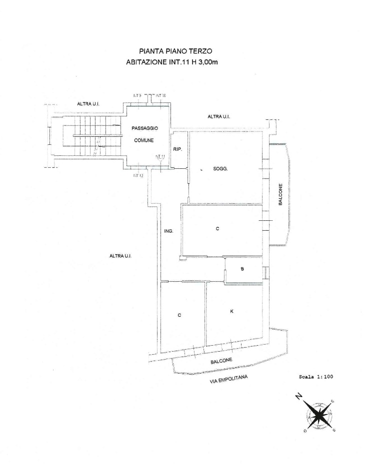 Via Empolitana, appartamento di 80 mq, posto al piano terzo (senza ascensore), composto da ingresso, sala, due camere, cucina, bagno, ripostiglio, due balconi. Luminoso.
